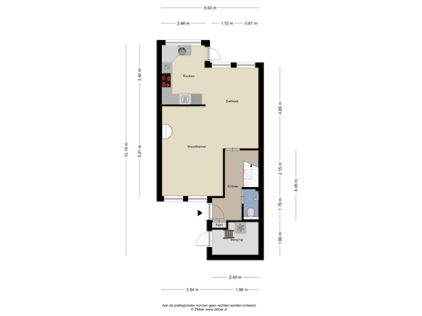 Indien gewenst kan de muur tussen keuken en woonkamer worden uitgebroken, zodat een open keuken met kookeiland gerealiseerd kan worden. De woonkamer en keuken zijn tezamen 40 m² groot.