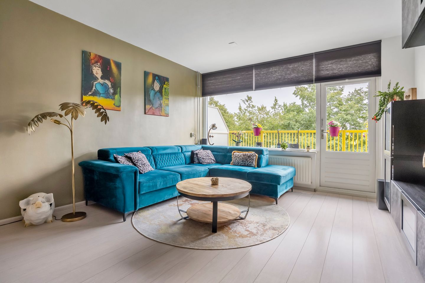 De woonkamer (24,7 m²) is heerlijk licht dankzij de grote ramen en biedt voldoende ruimte voor een comfortabele zithoek en eettafel. Er is tevens een trapkast aanwezig. Vanuit de woonkamer stap je het balkon op, gelegen aan de oostzijde – een fijne plek om in de ochtendzon te genieten van koffie of ontbijt.
