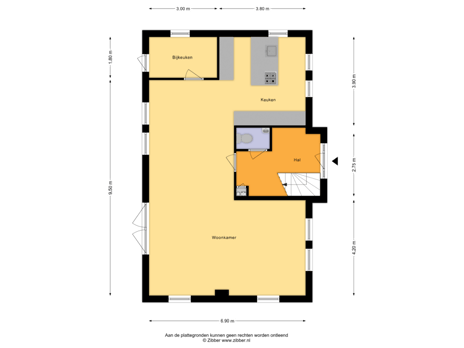 Loods: Totaal 390 m² op de begane grond met technische ruimte, damestoilet, herentoilet, kantoor en ruime zolder.