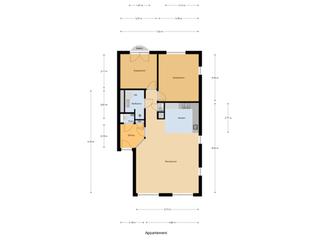 U betreedt het appartement in de hal met garderoberuimte en directe toegang tot de woonkamer, het toilet en de meterkast. De royale living valt direct op door de hoeveelheid licht, meerdere hoge ramen en nette keukenopstelling. Tijdens de vernieuwing in 2020 zijn de wanden volledig gestuukt, waardoor de ruimte een strakke en eigentijdse uitstraling heeft.