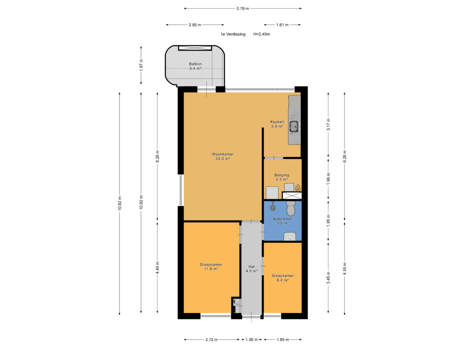 Toelichtingsclausule BBMI: het appartement is ingemeten conform de branchebrede meetinstructies (BBMI), afgeleid van de NEN 2580 normering. De Meetinstructie is bedoeld om een meer eenduidige manier van meten toe te passen voor het geven van een indicatie van de gebruiksoppervlakte. De Meetinstructie sluit verschillen in meetuitkomsten niet volledig uit, door bijvoorbeeld interpretatieverschillen, afrondingen of beperkingen bij het uitvoeren van de meting.