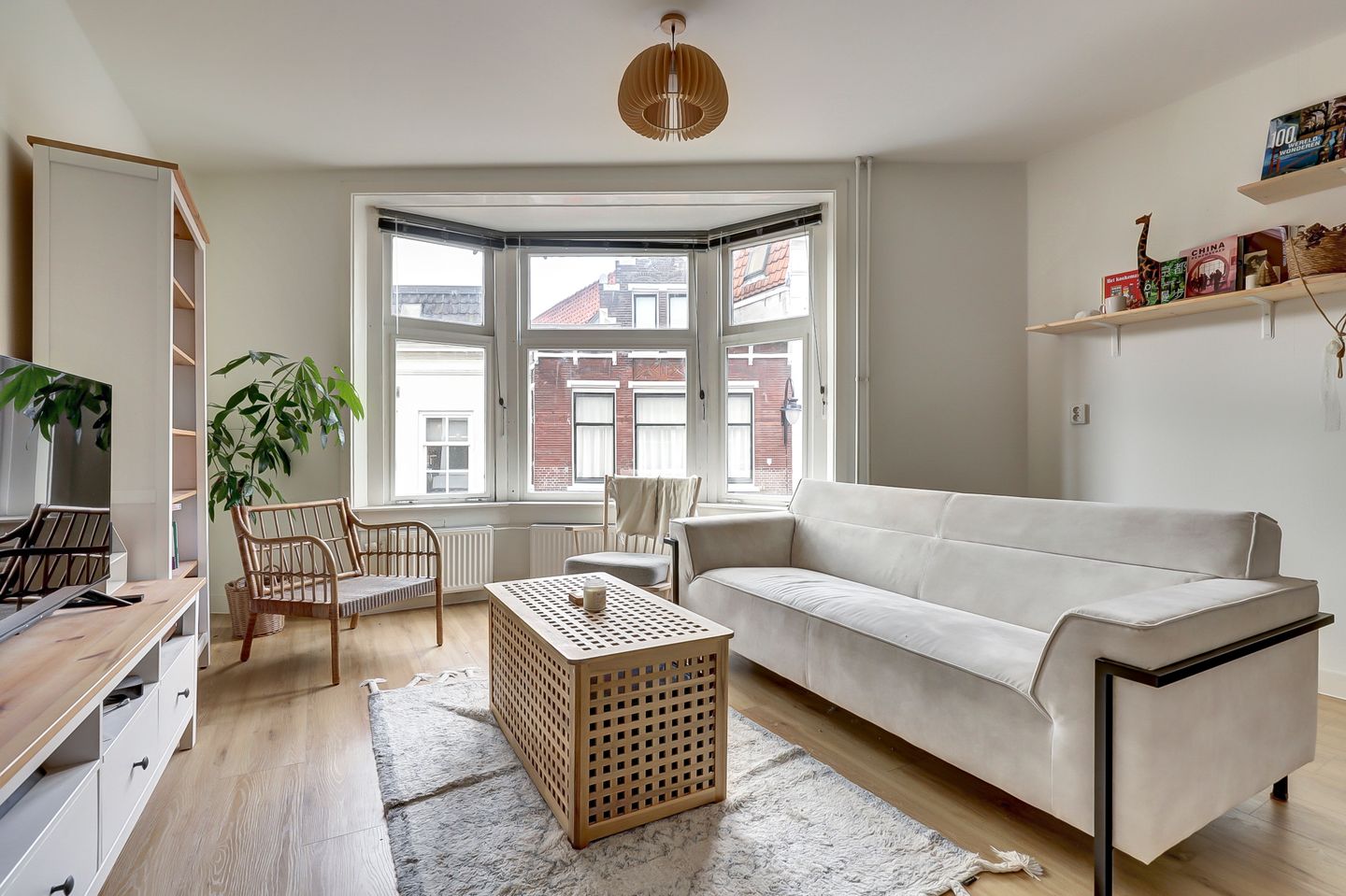 Via de trapopgang bereikt u de eerste verdieping, die in november 2023 volledig is getransformeerd tot één grote, lichte leefruimte. De woonkamer aan de voorzijde beschikt over een karakteristieke erker en grote ramen aan zowel de voor- als achterzijde, waardoor de ruimte een fijne lichtinval en een open, luchtig karakter heeft. De strakke wandafwerking en lichte laminaatvloer zorgen samen voor een moderne, frisse uitstraling. De ruime open keuken (november 2023) met vrijstaande bar is uitgerust met diverse inbouwapparatuur, waaronder een inductiekookplaat, vaatwasser, koel-vriescombinatie, oven, magnetron en wasbak. Het kunststof werkblad en de praktische opbergruimte maken de keuken zowel stijlvol als functioneel. Het toilet (november 2023) is vanuit de woonkamer bereikbaar, vergroot in oppervlakte en voorzien van een nieuwe vloer, wat bijdraagt aan het comfort en de verzorgde afwerking van deze verdieping. Vanuit de woonkamer kijkt u uit over de levendige winkelstraat De Kleiweg, wat perfect past bij de centrale en bruisende ligging van dit appartement.