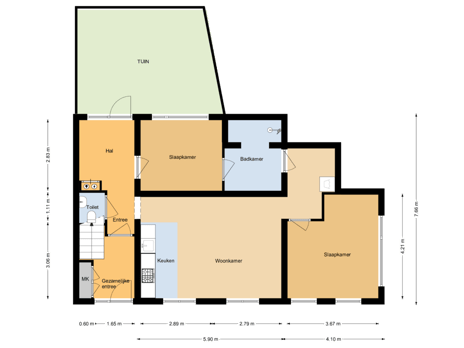- 24 m² (4,05 meter diep en 5,87 meter breed)
