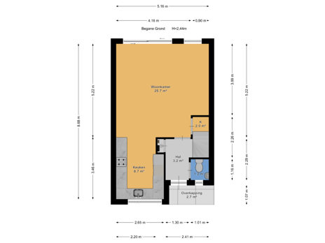 Toelichtingsclausule BBMI: de woning is ingemeten conform de branchebrede meetinstructies (BBMI), afgeleid van de NEN 2580 normering. De Meetinstructie is bedoeld om een meer eenduidige manier van meten toe te passen voor het geven van een indicatie van de gebruiksoppervlakte. De Meetinstructie sluit verschillen in meetuitkomsten niet volledig uit, door bijvoorbeeld interpretatieverschillen, afrondingen of beperkingen bij het uitvoeren van de meting.
