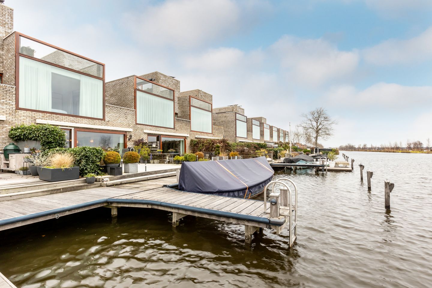 De achtertuin heeft een prachtige ligging direct aan de Breevaart. Het terras is onderheid en beschikt over een zonnescherm. In het verlengde van de achtertuin bevindt zich een vlonder met zwemtrap en een eigen aanlegplaats. Binnen een mum van tijd vaart u zo de Reeuwijkse Plassen op!