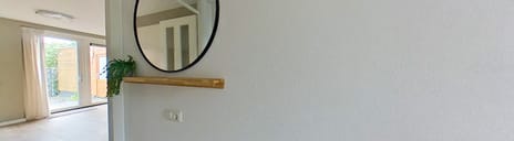 Een heerlijke lichte living dat aan de voor- en achterzijde open gezet kan worden met de openslaande deuren. Op de vloer is een kwalitatieve laminaatvloer gelegd en zijn de wanden en plafonds strak afgewerkt.