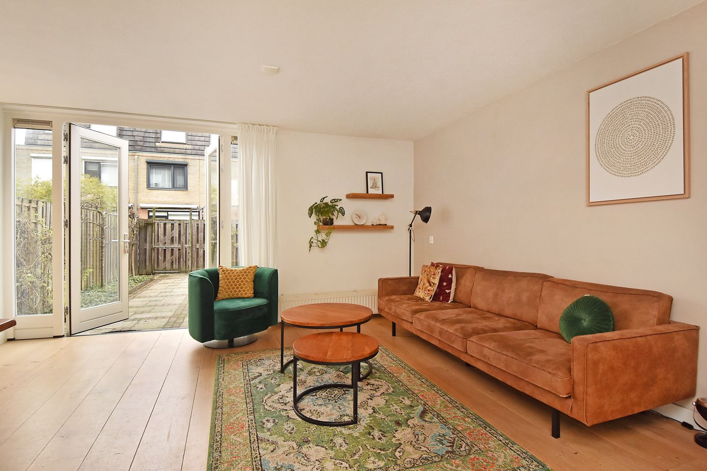 Via de entree komt u in de hal met groepenkast (10 groepen, aardlekschakelaar, kookgroep, aansluiting voor een elektrische auto en glasvezelaansluiting). Toiletruimte is gedeeltelijk betegeld en voorzien van een wandcloset en fonteintje. Vanuit de hal is de trapopgang naar de bovengelegen verdieping. De voordeur is in 2020 voorzien van een kunststof deur met dubbel glas. De gehele begane grondvloer is voorzien van fraaie houten vloerdelen. De woonkamer ruim en licht, met aan voorzijde de open keuken en openslaande hardhouten deuren (2016) aan de achterzijde, welke toegang geven naar de achtertuin. Nette gestuukte wandafwerking en de lichte vloer maken de woonkamer compleet. De open keuken is voorzien van een hoekopstelling (2017) voorzien van een beton aanrechtblad, laden, kasten, inductiekookplaat, vaatwasser (2020), afzuigkap, combi oven/magnetron, en koel/vriescombinatie.