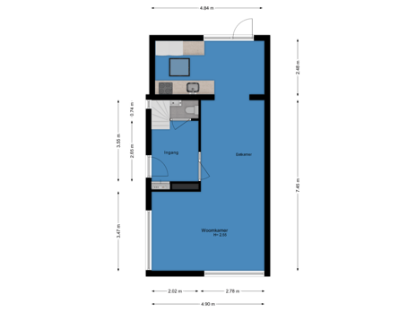 - 77 m² (7,65 meter diep en 10,05 meter breed)