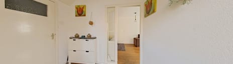 Overloop met toegang tot twee slaapkamers en de badkamer. De grootste slaapkamer ligt aan de voorzijde. Deze kamer bestond oorspronkelijk uit twee slaapkamers, maar is nu zo ingedeeld dat er aan de slaapkamer een ruimte zit die zich ideaal leent als inloopkast. De andere slaapkamer ligt aan de achterzijde. Beide slaapkamers zijn voorzien van vaste kasten en een laminaatvloer. De badkamer ligt in het midden en is in 2021 vernieuwd. De badkamer beschikt over een inloopdouche met regendouche, een wastafel met waskom en een tweede toilet (wandcloset). De nissen boven het toilet zijn afgewerkt met trendy tegelwerk en voorzien van inbouwspots.