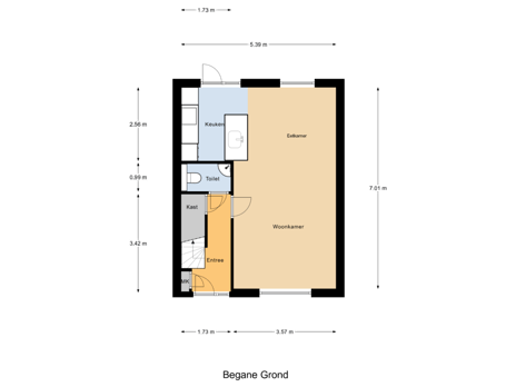 - 69 m² (12,74 meter diep en 5,40 meter breed)