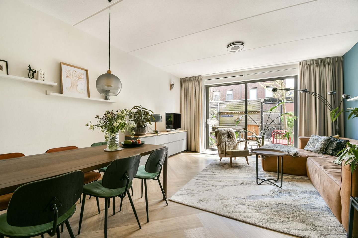 - Lichte woonkamer met schuifpui;