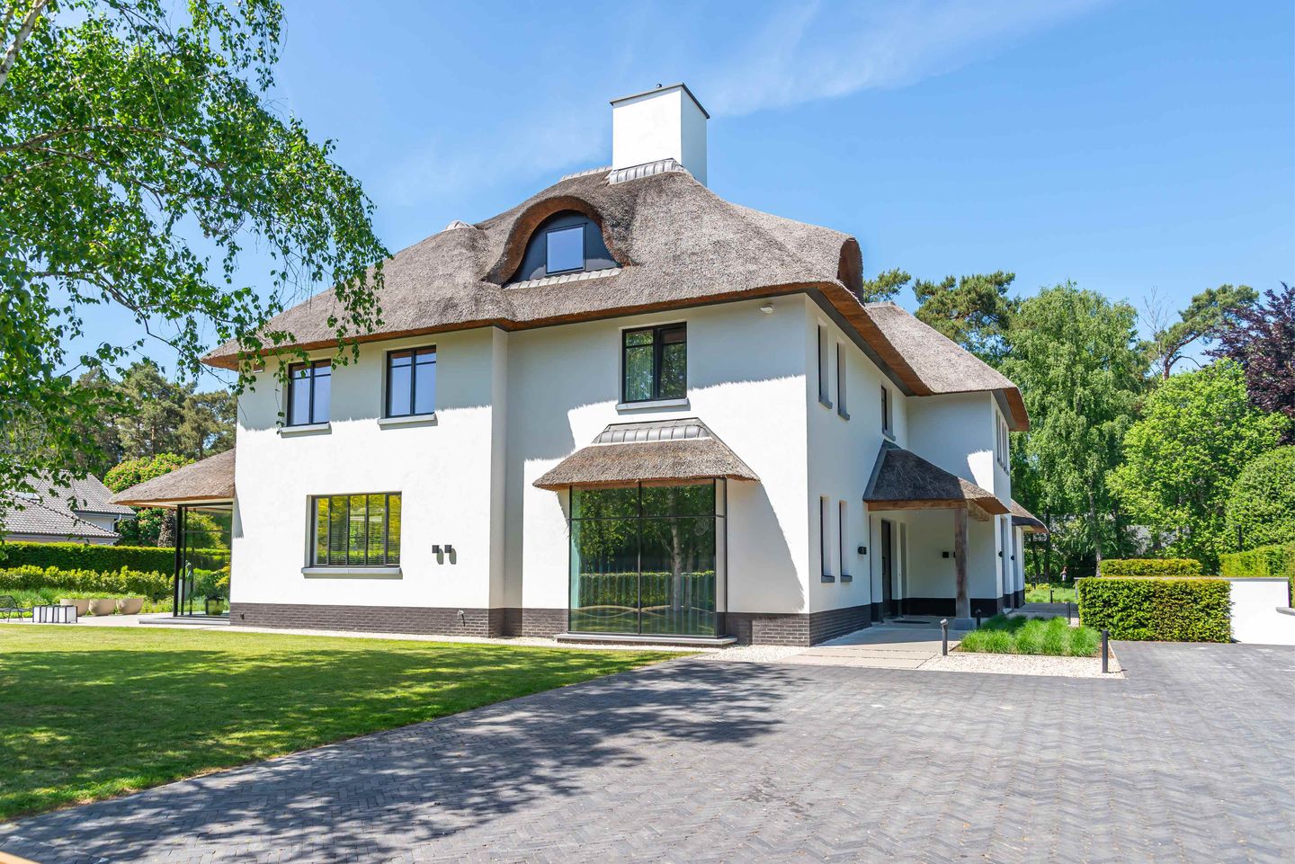 De moderne stijl van de woning is gecombineerd met warme accenten, heeft een zeer hoogwaardige afwerking, en biedt veel lichtinval door de grote raampartijen. De villa van ca. 1060 m2 bewoonbare oppervlakte en een perceel van 42 are dateert uit 2020. De woning beschikt over vier verdiepingen met een royale living, eetkamer, open keuken, kantoor, bar ruimte met ensuite badkamer, vier slaapkamers met een en-suite badkamer en dressing in de master-bedroom, een tweede badkamer voor de overige kamers, zeer ruime zolder, kelder met voldoende opslagruimte, fitnessruimte met sauna en badkamer en een garage voor maar liefst 4 wagens.