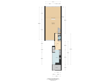 - 48 m² (8,80 meter diep en 5,50 meter breed)