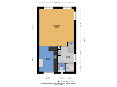 Je stapt de woning binnen in een lichte entree met toegang tot een bergkast, het toilet en de trap naar de eerste verdieping. Vanuit hier loop je door naar de woonkamer, die aan de straatzijde ligt. De grote ramen zorgen voor een prettige lichtinval en geven de ruimte een rustige, open sfeer. Er is voldoende plaats voor een royale zithoek en een lange eettafel.