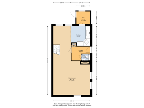 Je stapt binnen in de hal met toilet aan de linkerzijde en meterkast rechts. De hal leidt je rechtstreeks de woonkamer in, met de keuken aan de achterzijde en de trap centraal in de kamer geplaatst. De lichte woonkamer beschikt over een open haard die meteen de aandacht trekt en voor extra sfeer zorgt. De keuken is functioneel maar enigszins gedateerd. Het biedt je vooral de kans om naar eigen smaak een nieuwe keuken te plaatsen. Een kleine uitbouw zorgt hier voor extra ruimte.