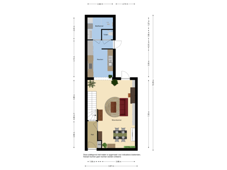 - 187 m² (34,00 meter diep en 5,50 meter breed)