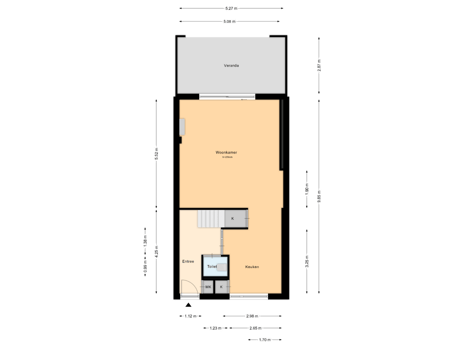 48 m² (9,10 meter diep en 5,25 meter breed)