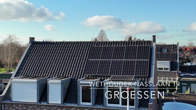 Voorzien van 16 zonnepanelen: 11 op het dak (2018) en 5 op het platte dak (2023);