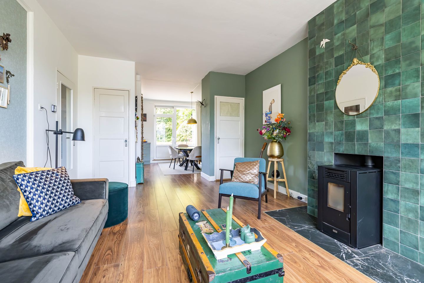 Je komt binnen in de hal met een modern hangend toilet. De royale woonkamer met halfopen keuken (samen ca. 42 m²) is heerlijk licht dankzij de oost-west ligging. De vernieuwde schouw met pelletkachel zorgt voor extra sfeer, en vaste kasten bieden volop opbergruimte. Aan de achterzijde stap je vanuit de eethoek zo het balkon op - perfect om te genieten van de middag- en avondzon.
