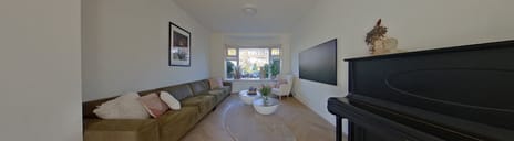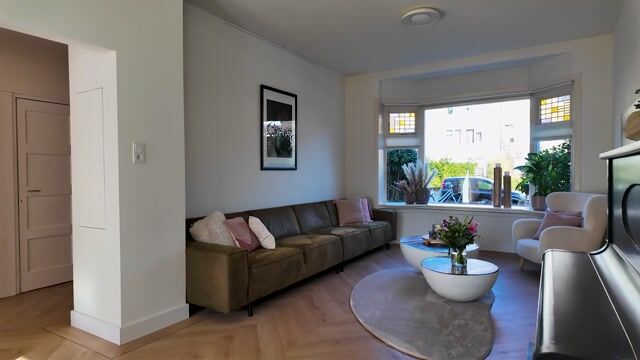 Indeling: entree/royale hal met glas-in-lood boven de voordeur, trapopgang en kastruimte daaronder. Het eerste moderne toilet met wastafel is hier ook aanwezig en we zien al een glimp van de keuken achterin. Dan lopen we de woonkamer in van maar liefst 37m², overgoten door licht dankzij de erker aan de voorzijde en de grote raampartijen met openslaande deuren aan de tuinkant. Zo stap je met het mooie weer gelijk de tuin in en creëer je een fijne verbinding tussen binnen en buiten. De vloer is voorzien van vloerverwarming met een fraaie visgraat pvc vloer wat perfect past bij de gehele sfeer. De semi-open keuken van Tulp uit 2022 is van absolute topkwaliteit met Miele apparatuur en touch to open systeem. Aan de linkerzijde een hoge kastenwand met oven en combinatie-magnetron, een grote koelkast en grote vriezer. De rechterzijde met composiet werkblad is voorzien van Pitt cooking met 6 pitten wat het strakke uiterlijk onderstreept, Quooker kokend waterkraan en vaatwasser. Vanuit hier kun je via de tuindeur naar buiten, waar het heerlijk vertoeven is. De tuin is aangelegd met oude waaltjes en dankzij de ligging met een overkapte zit v.v. sedum dak, kun je hier volop genieten met mooi weer.