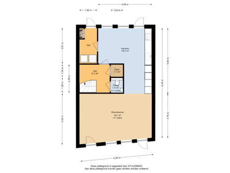 - 56 m² (9,00 meter diep en 6,20 meter breed)