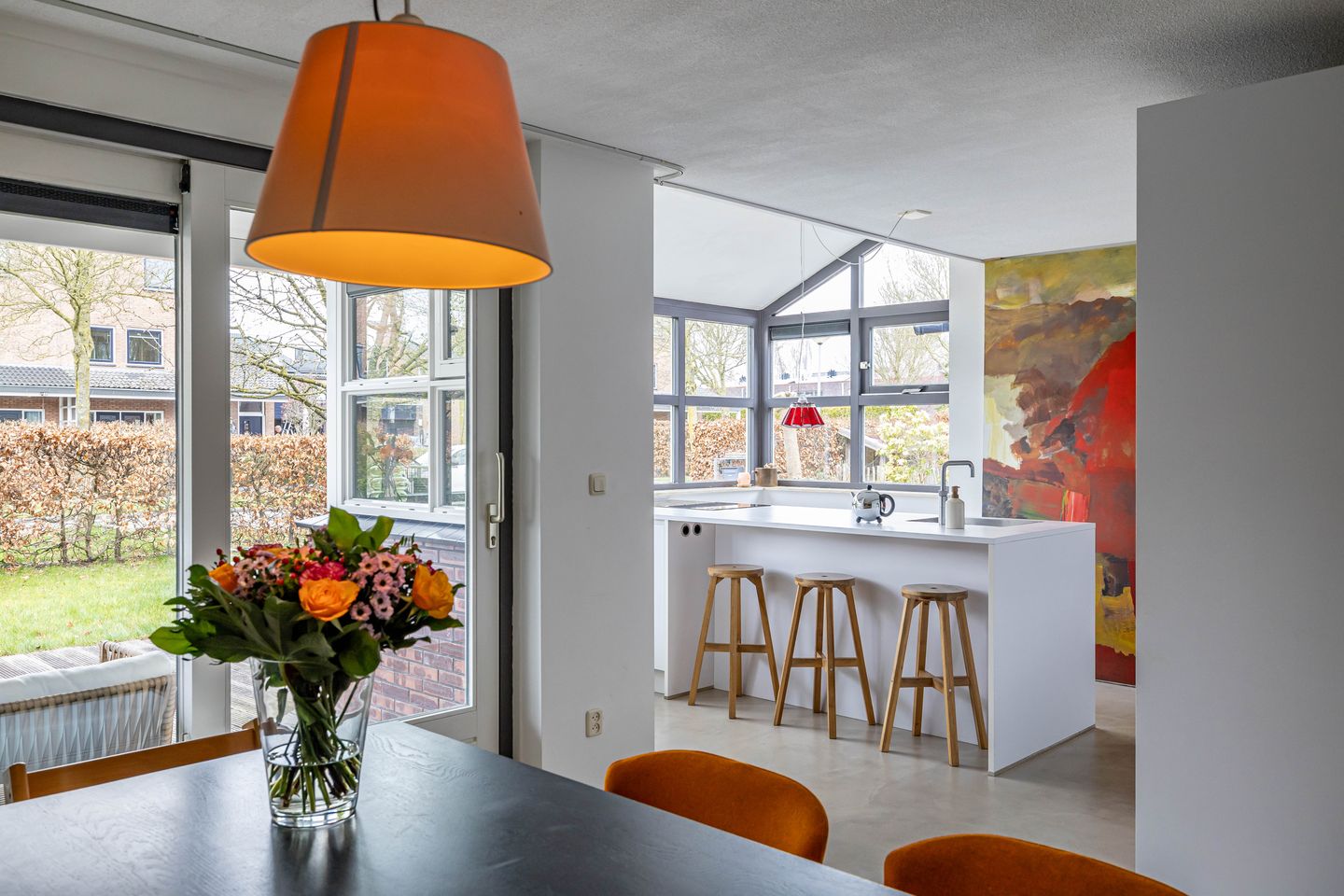 Bij binnenkomst ervaar je direct de ruimte en het licht dat deze woning te bieden heeft. De lichte royale woonkeuken is een heerlijke plek waar je gezellig samenkomt met familie en vrienden. Dankzij de grote raampartijen baadt de keuken in het daglicht, wat zorgt voor een aangename en open sfeer. Maar ook de woonkamer en het kantoor zijn voorzien van een enorme raampartij, uitkijkend op het riante perceel achter de woning.
