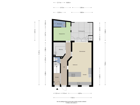 - 40 m² (7,00 meter diep en 7,30 meter breed)