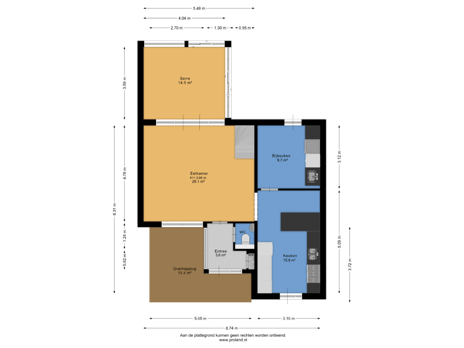 - 100 m² (10,50 meter diep en 9,50 meter breed)