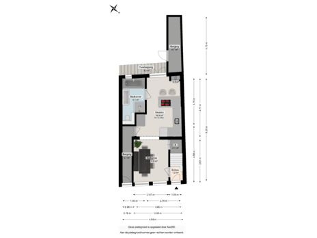 - 18 m² (4,92 meter diep en 3,59 meter breed)