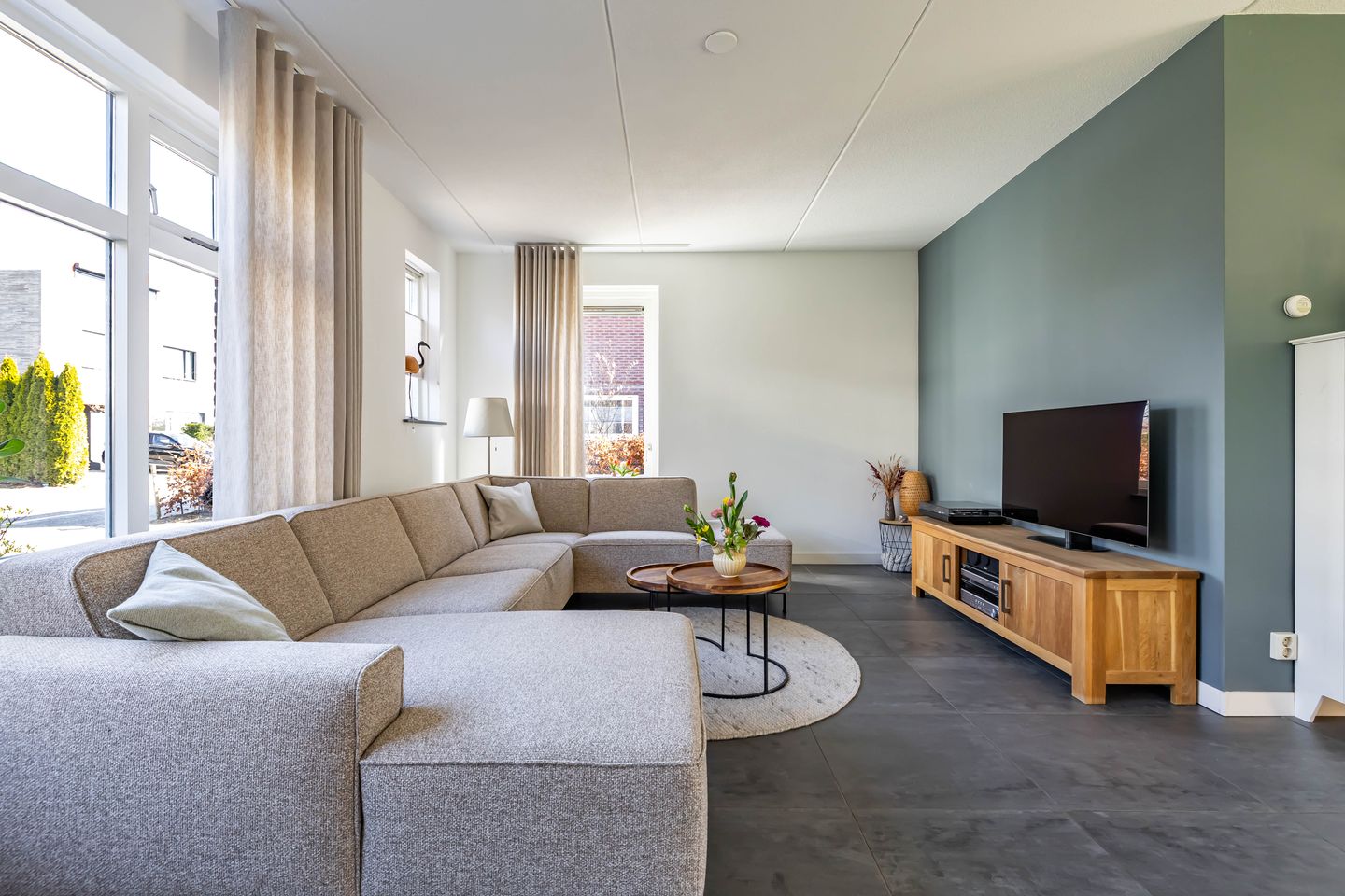 De woning valt direct op door de ruime en lichte woonkamer met moderne halfopen keuken van circa 60 m². Dankzij de openslaande deuren naar de tuin en de erker aan de zijkant is er veel lichtinval en een prettig ruimtelijk gevoel. De keuken is in 2023 vernieuwd en modern uitgevoerd met inbouwapparatuur en een geïntegreerd afzuigsysteem. Aansluitend bevindt zich de ruime en volledig geïsoleerde bijkeuken/garage.
