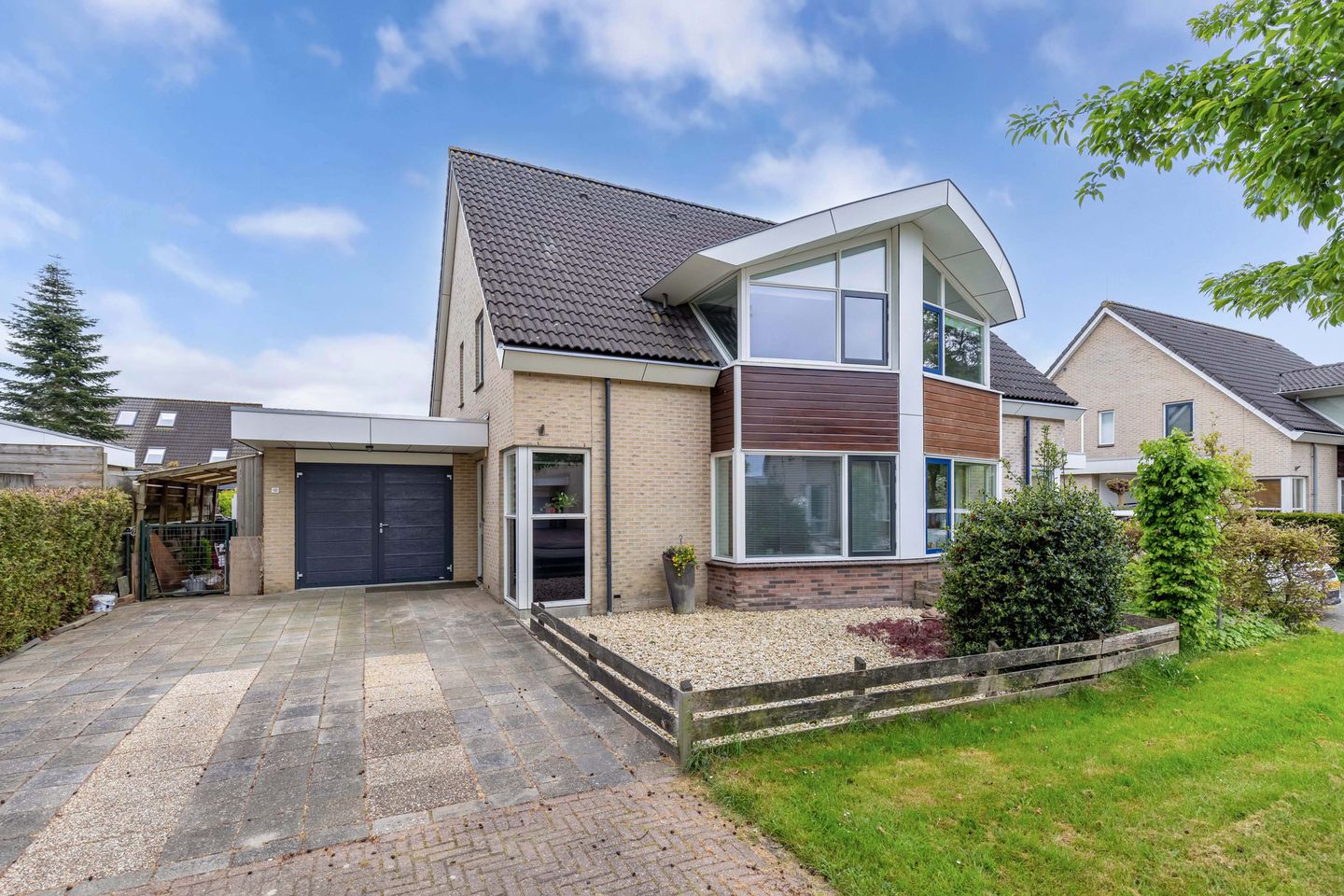 De voortuin is onderhoudsvriendelijk aangelegd en op de oprit is ruimte voor meerdere auto’s.