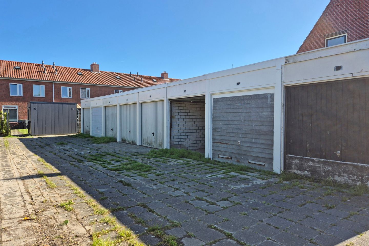 Het betreft een garagebox met een afmeting van ca. 2.30 bij 5.05 meter. Voorzien van een kanteldeur. De vloer is van beton en de muren zijn gemetseld. Er is geen elektra aanwezig. De dakplaten bevatten mogelijk asbest.