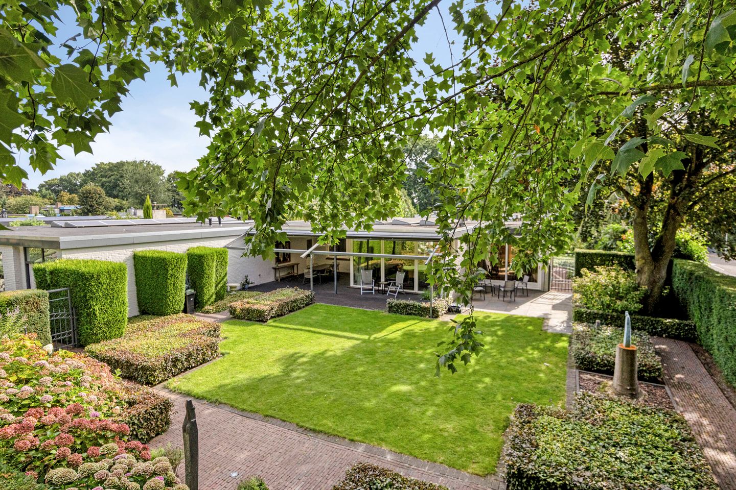 Mede door de hoekligging is de achtertuin extra breed. De tuin is gesitueerd op het westen en biedt volop zon en privacy. De tuin is verzorgd aangelegd met een tweetal terrassen (waarvan één overdekt), diverse hagen, gazon en sierbestratingen. De overkapping met lichtkoepel zorgt ervoor dat u van vroeg tot laat in het jaar van de tuin kunt genieten. De overkapping is aan de achterzijde verder nog voorzien van een zonnescherm.
