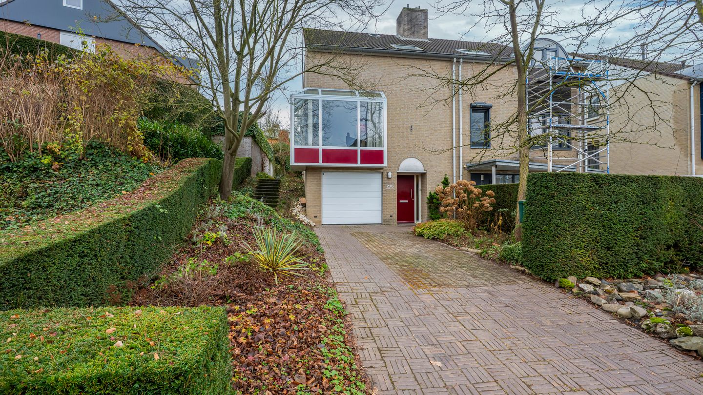 Fraai aangelegde voortuin met royale oprit en overdekte entree.