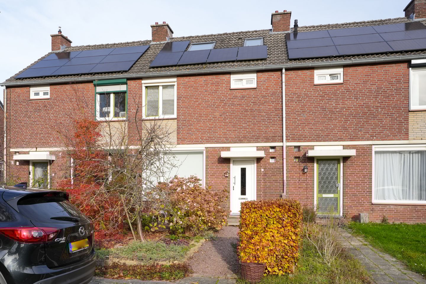 - De kozijnen in de voorgevel zijn voorzien van elektrisch bedienbare zonwering