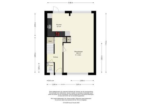 - 70 m² (10,00 meter diep en 7,00 meter breed)