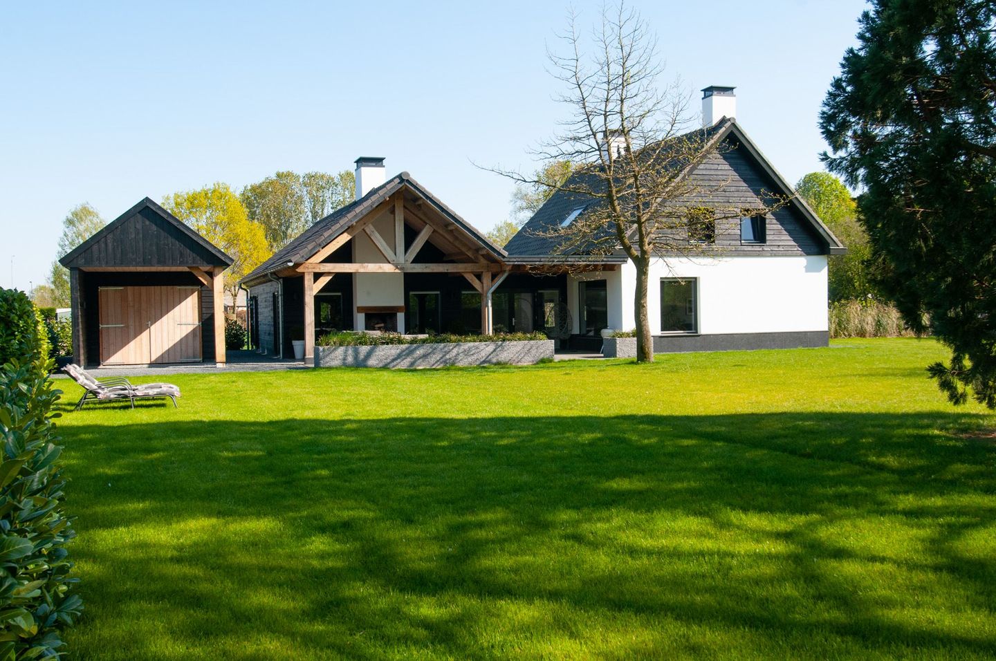 - Carport, parkeerplaats en vrijstaande houten garage