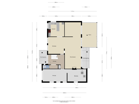 Via de entree kom je binnen in een royale hal met garderobe en toiletruimte. Vanuit hier ontvouwt zich de begane grond zoals je die bij dit type woning mag verwachten: ruim, logisch ingedeeld en prettig in gebruik. De U-vormige woonkamer biedt een duidelijke scheiding tussen het zitgedeelte met open haard en het eetgedeelte, waardoor beide functies hun eigen plek hebben zonder de verbinding te verliezen. Grote raampartijen zorgen voor een fijne lichtinval en een prettige relatie met de tuin. Aansluitend bevindt zich de serre, een heerlijke plek waar binnen en buiten naadloos in elkaar overlopen en waar je vrijwel het hele jaar door van de achtertuin geniet.