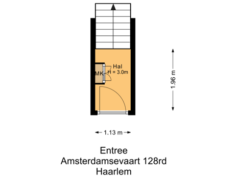 Begane grond: entree met meterkast en trap naar boven richting de 1e verdieping.