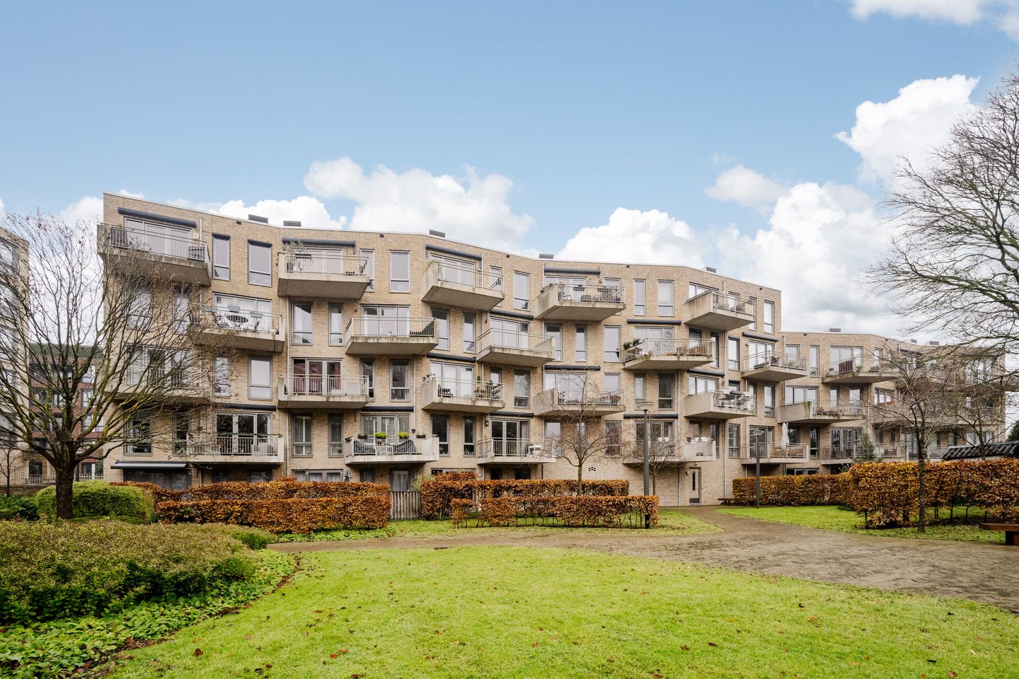 De ruime en lichte woonkamer is gesitueerd aan de achterzijde en biedt via openslaande deuren toegang tot een royaal balkon op het zuiden – perfect voor een kop koffie in de ochtendzon of een borrel aan het eind van de dag. Vanuit hier kijk je uit op de fraai aangelegde, gemeenschappelijke binnentuin.