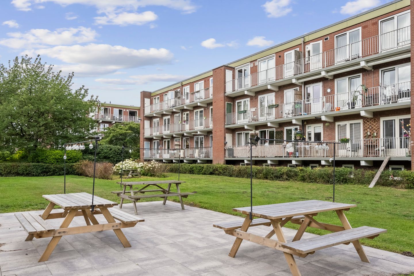 Welcome to Delftlaan 341, a wonderfully bright apartment on the first floor of a residential complex in Haarlem-Noord. The living room is spacious and feels open thanks to the unobstructed view of the greenery. No prying eyes – just plenty of privacy and a warm, inviting atmosphere. The kitchen – equipped with an induction cooktop, dishwasher, fridge, and combination oven/microwave – leads directly out to the balcony. It faces southeast, so your mornings always start with the sun.
