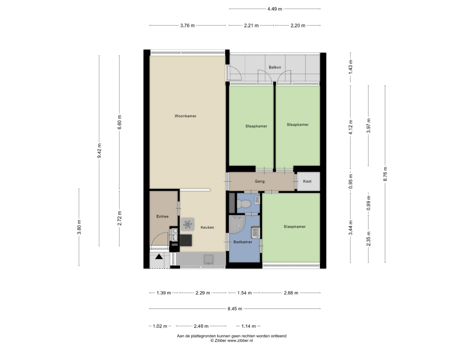 Je stapt het appartement binnen via de hal met meterkast en garderoberuimte. De woonkamer is opvallend licht en biedt een prachtig vrij uitzicht over het park, en biedt directe toegang tot het balkon. Aan de voorzijde bevindt zich de open keuken. Het appartement beschikt over een ruime slaapkamer aan de voorzijde en twee slaapkamers aan de achterzijde, beide eveneens met toegang tot het balkon. De badkamer is voorzien van een douche en wastafel. Het toilet is separaat gelegen aan de centrale hal welke ook nog een diepe bergkast heeft.