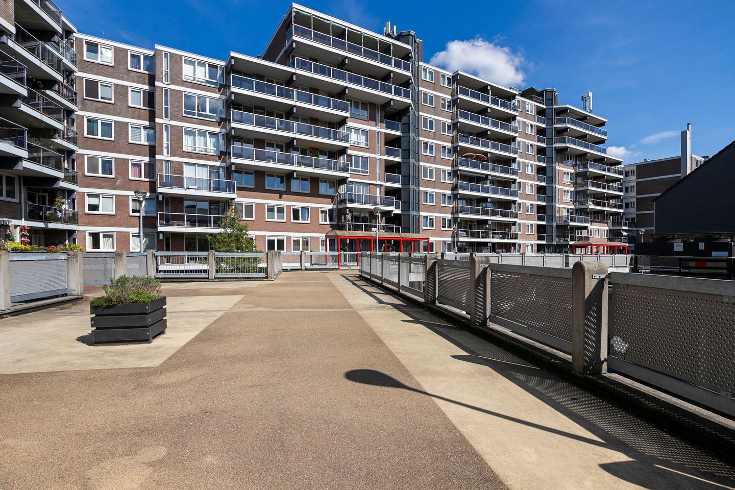Afgesloten entree met intercom, brievenbussen waarna u via het portiek naar de woning kunt.