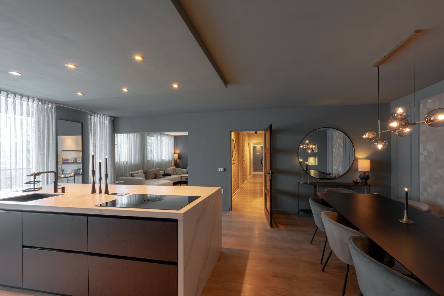 Zodra je dit appartement binnenstapt, voel je het meteen: dit is geen doorsnee woning, dit is een plek waar stijl en comfort samenkomen. Je waant je in een luxe boutiquehotel, maar dan met alle warmte en ruimte van thuis. Alles klopt. De afwerking is strak en eigentijds, met fraaie sierlijsten, luxe wandafwerking en zorgvuldig gekozen verlichting die elke ruimte laat stralen. Hier hoef je niets meer te doen, behalve je koffers uitpakken en genieten.