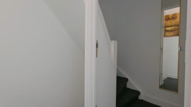 Private entrance with space for a wardrobe and staircase leading to the living level.