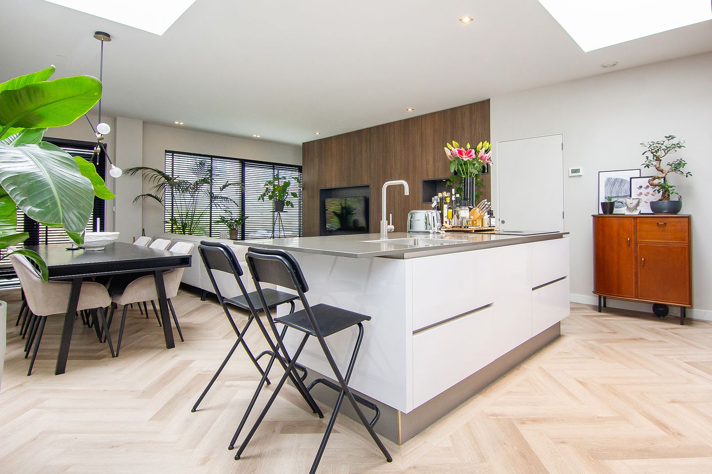 Wauw..! Dit is waarschijnlijk het eerste dat in je opkomt als je dit tot-in-de-puntjes gestylde, high end appartement binnenstapt. Architectenbureau Broos & De Bruin uit Rotterdam heeft bij de totale renovatie in 2020 gebruikgemaakt van de draagmurenvrije constructie en een prachtige leefruimte gecreëerd door de functionele ruimtes in een centraal opgestelde kubus onder te brengen. De kubus is niet alleen handig, maar ook een echte eye catcher die zorgt voor een unieke woonbeleving. De verlichting tussen de kubus en het plafond zorgen voor een mooi ruimtelijk effect. De woning kenmerkt zicht door een luxe afwerking met hoogwaardige materialen, hoge plafonds, zorgvuldig gekozen kleuren, een op maat gemaakt lichtplan met een Philips Hue systeem en kastenwerk op meubelmakers niveau. Daarnaast is de woning optimaal geïsoleerd en beschikt dan ook over energielabel A. Ideaal gelegen aan de rand van het stadscentrum en het Kenaupark. Je wandelt zo de binnenstad in met haar vele restaurants, terrassen, musea, theaters en winkels. Met de auto ben je in 10 minuten op de snelweg. Voor de binnenstad is het vrij makkelijk parkeren in de buurt en zijn er oplaadpunten in overvloed. Liever met het OV? In een paar minuten loop je naar Station Haarlem, waarvandaan je een directe treinverbinding hebt met o.a. Amsterdam, Alkmaar, Den Haag en Rotterdam. Het strand van Bloemendaal aan Zee is op fietsafstand. INDELING Begane grond: entree, negen meter lange hal met o.a. toegang naar het luxe toilet en er zijn prachtig weggewerkte kasten die onderdeel uitmaken van de kubus. Ook in de living is een brede kastenwand in dezelfde stijl, waarin de TV in is ingebouwd. De living is heerlijk licht door de grote ramen en twee lichtstraten. Voor verkoeling in de zomer is er airconditioning aangelegd. De luxe open keuken is voorzien van een kookeiland met een Bora kookplaat, spoelbak, vaatwasser, veel bergruimte en een composietwerkblad met een gezellig zitbar gedeelte. De kastenwand met combi-oven is prachtig weggewerkt en onderdeel van de kubus. Via de woningbrede glazen pui is er toegang naar de zonnige achtertuin op het zuiden ligt. De tuin grenst aan een doodlopend hofje en is ook via een achterom te bereiken. Hier zit je heerlijk rustig en geniet je de hele dag van de zon. In de kubus vind je ook de Sfeervolle slaapkamer met een eigen airconditioning, wederom een kastenwand en een beamer. Aan de voorkant is een multifunctionele ruimte ontworpen die ideaal is werkkamer. Maar ook als logeerkamer door het tweepersoonsbed (140x200) dat uit de wand klapt van de kubus. Met diverse schuifdeuren zijn de twee kamers eenvoudig af te sluiten. Ook de luxe badkamer bevindt zich in de kubus. De wanden zijn afgewerkt met exclusief beton cire. Er is een royale inloopdouche met een glazen schuifwand en een wastafelmeubel met spiegelkast. • Woonoppervlakte: 102m² • Energielabel A • CV-ketel: Remeha Tzerra 2020 • Voorzien van airconditioning en vloerverwarming • In 2020 volledig gerenoveerd • Glad gestucte wanden en plafonds • Volwaardig Philips Hue systeem met 40 lampen • Alarmsysteem • Alle ingebouwde kasten zijn vervaardigd door Ramakers Interieurbouw • Zonnige achtertuin met achterom • Actieve VvE, servicekosten € 46,- per maand • Oplevering in overleg