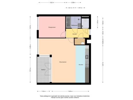 - 8 m² (1,93 meter diep en 3,90 meter breed)
