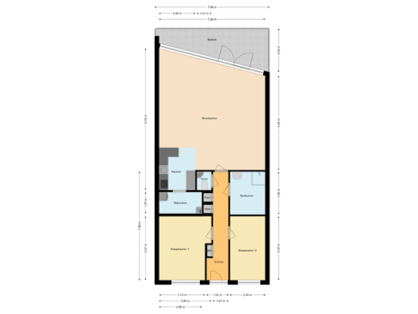 - 42 m² (6,92 meter diep en 6,00 meter breed)