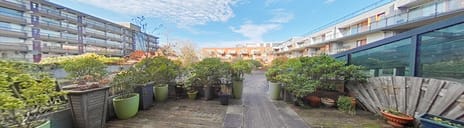 First floor: through the unique courtyard garden, you reach the house and the entrance via the private front garden of approximately 40m². Entrance hall, meter cupboard, toilet with hand basin, two bedrooms, and a bathroom with a shower, sink, and washing machine connection. Spacious living room, an impressive 7.29m wide. The living room is bright thanks to the large floor-to-ceiling windows, offering a pleasant view of the square. From the living room, French doors open onto the spacious balcony/terrace of approximately 15m², spanning the entire width of the house, with ample space for a cozy lounge set, for example. The balcony faces south, allowing you to enjoy the sun in both summer and winter. The open-plan kitchen is equipped with a 4-burner induction cooktop and an extractor fan. The kitchen provides access to the indoor storage room housing the central heating boiler (Intergas, built in 2024) and the mechanical ventilation unit.