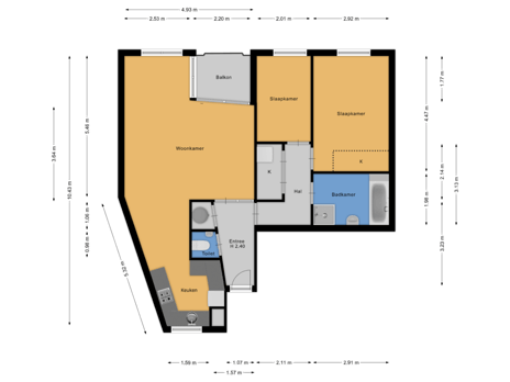 Gezamenlijke entree met royale hal, bellentableau, brievenbussen, trappenhuis, lift, gezamenlijke fietsenberging.